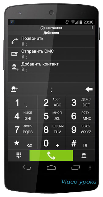 позвонить, отправить сообщение, просмотреть информацию,